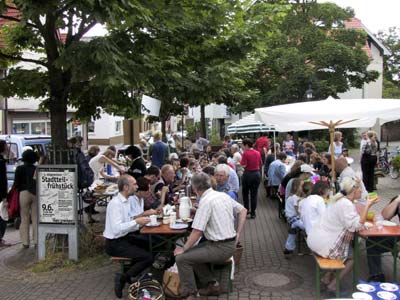 Beim zweiten Versuch des ersten allgemeinen Rohrbacher Stadtteilfrühstücks meinte es der Himmel gut mit uns punkern, vielleicht weil wir unsere "Beziehungen nach oben" verbessert haben?!- Ein herzliches Dankeschön in diesem Zusammenhang an Pfarrer Anzinger.