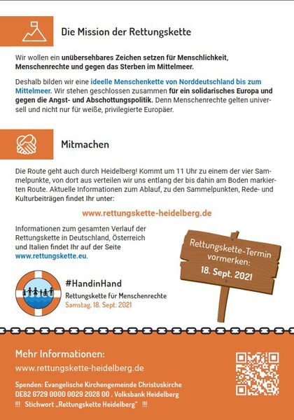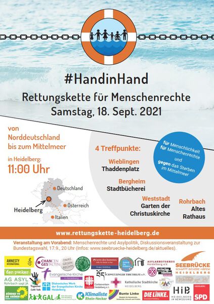 Der punker hat gemeinsam mit der AG 'Asyl ror sagt ja', allen vorran Margret Krannich die Organisation der Menschenkette in Rohrbach übernommen. Startpunkt war der Rathausplatz, an dem sich gegen 11 Uhr ca. 150 Menschen einfanden. Muskalisch eingestimmt wurde die Aktion vom Nabakra sowie dem Trio I Cantori. Janick Pfitsch erläuterte schließlich die politischen, inhaltlich und menschlichen Aspekte in eindrucksvollen und bewegenden Worten. Einfühlsame und sehr persönliche Worte fand Marha Röter in Form eines poetry slam. Anschließend wurde die Kette gebildet, an der sich ca 250 Personen beteiligten und die (unter Wahrung des korrekten Coronaabstandes) bis fast zur Sickingenstraße erstreckte.