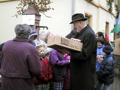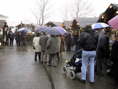 Nur das Wetter passte nicht so recht zum Ambiente. Bei weihnachtlichen Liedern, weihnachtlichem Schmuck und entsprechenden Speisen und vor allem Getränken weinte der Himmel fast ununterbrochen. Da muss Petrus etwas missverstanden haben, neue Rechtschreibung wahrscheinlich. Ansonsten, früh wie immer, parallel wie immer und schön wie immer: Am Wochenende stiegen die Weihnachtsmärkte des Stadtteilvereines am Rathaus und der der Bauers am Dachsbuckel. Und trotz miesem Wetter drängten sich die Massen an den Ständen. Vor allem an denen mit Glühwein. Wen wundert's. Vermisst wurde einzig der Rauschebart von Santa-Klaus.