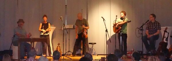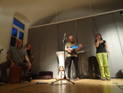 Vorgetragen wurde das abwechslungsreiche Programm von Musikern aus unterschiedlichen Generationen. Zu den alten Hasen gehörten Wolfgang Buchholtz (Geige) als Bandleader und der Sizilianer Toti Lanzalaco, zuständig für Percussion vor allem auf der Conga, unter Einbezug des Publikums aber auch mit Hilfe von Klatschen und einem Becherspiel, das an den durstigen Zwerg Perkeo erinnern sollte. Viel Beifall gab’s ebenso für Daniel Draxler (Banjo, Mandoline), Ulla Goss (Flöte und Geige) und Andreas Knapp (Akkordeon, Mundharmonika und Gesang).