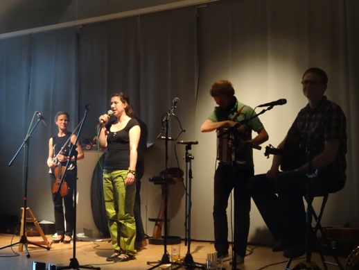 In Irland wurzelt auch der Folk der „Bottled Spirits“. Bestes Beispiel dafür waren die gefühlvollen Balladen der jungen deutsch-irischen Sängerin Clara Shamlou. Dass sie vorab den Inhalt der sehnsuchtsvollen Liebeslieder oder schaurig-schönen Mordgeschichten verdeutlichte, erleichterte das Verständnis für soviel Traurigkeit ohne Happy End. Oder ist es doch ein glücklicher Ausgang, wenn die Angebetete trotz aller Geschenke des vermeintlichen Bräutigams am Hochzeitstag nicht zur Verfügung steht, weil sie ihrem armen Liebsten die Treue hält?