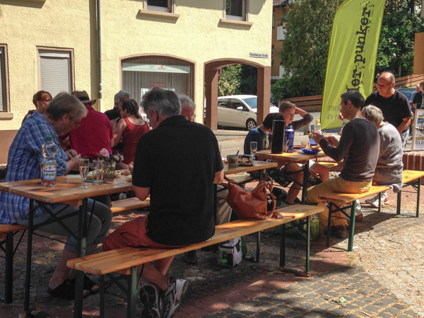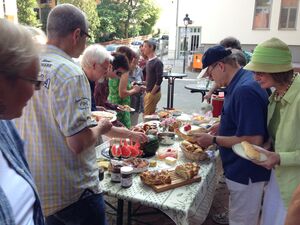 Wochenend und Sonnenschein ... brauchst Du mehr zum glücklich sein? So ähnlich heißt es bei den Comedian Harmonists. Die Rohrbacher halfen noch ein bisschen nach: Mit Kaffee, Tee, Kuchen, Brot, selbstgemachten Brotauftrichen trafen sie sich vor der Eichendorffhalle unter der großen Platane und teilten in geselliger Runde die mitgebrachten Speisen. Eine schöne Tradition seit nunmehr 13 Jahren ...