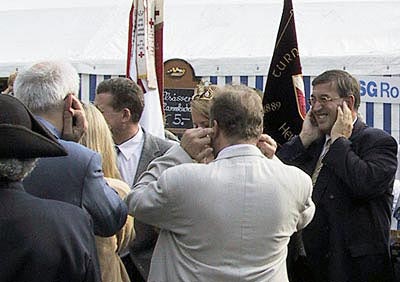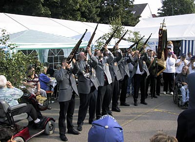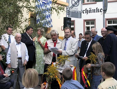 Wie jedes Jahr, so war auch 2003 wieder die Knaubersche Kerwered der Höhepunkt der Kerweeröffnung. Zahlreich vertreten waren diesmal die Politiker aus Bund, Land und vor allem Stadt. Wen wundert's, stehen doch bald Kommunalwahlen an. Bernd Frauenfeld, 1. Vorsitzender des Stadtteilvereines, begrüßte die Prominenz, zu der auch die OB und die beiden Rohrbacher Kinderbeauftragten zählten, nicht ohne auf die drängenden Probleme des Stadtteiles hinzuweisen.