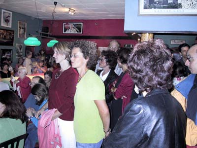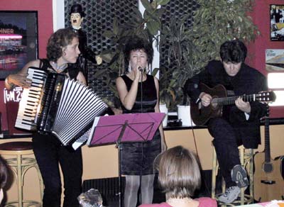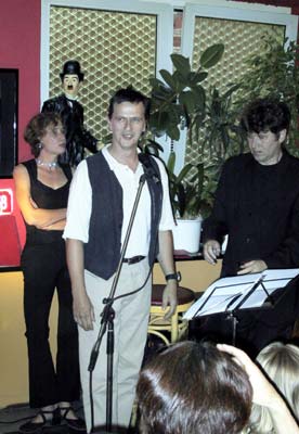 Gernot Hois (lesen Sie seine Rede hier) begrüßte die Gäste mit einer kurzen Beschreibung des »punker«. Und dann folgte ein langer Abend mit heißer Musik und schwüler Luft. Denn leider waren wir gezwungen, ins Innere der Gaststätte auszuweichen, da ein Anwohner uns das Konzert im Biergarten verbot. Die Atmosphäre litt vielleicht ein wenig, nicht aber die Stimmung. Denn was Martina Baumann und Bernd Sperrfechter zu bieten hatten, war Tango, Musette, Klezmer und Bossanova vom Feinsten. Das Publikum war begeistert und als dann auch noch Jutta Glaser mit ihrer phantastischen Stimme den Schweitzerhof in einen tropischen Urwald verwandelte, war kein Halten mehr. Nach einigen Zugaben waren die Musiker/innen so erschöpft wie das Publikum...