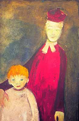 Besonders stark: Das Triptychon. Namenlos wie alle Werke, zeigt es eine Sicht auf die katholische Kirche, die kritischer nicht sein könnte. Im Inneren eine fledermausartige Figur mit einer angedeuteten Mütze, die an Kommunisten feindliche Abbildungen der Nazis erinnert. Auf den Außenseiten eine Nonne, die zur Hexe gerät und ein Kardinal, der einem kleinen Jungen mit großen Augen lüstern den Arm über die Schulter legt.