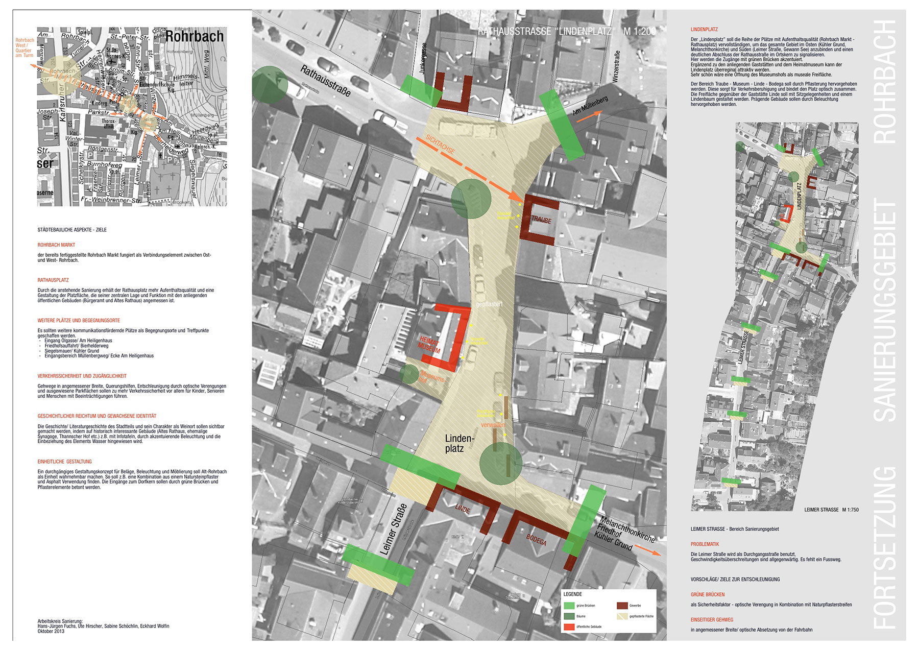 Wir fordern, dass weitere Projekte im alten Rohrbacher Kern realisiert werden, z. B. der Umbau der östlichen Rathausstraße, des „Lindenplatzes” am Heimatmuseum und der Leimer Straße. Das Sanierungsgebiet muss über das Jahr 2015 fortgesetzt werden, die Stadt Heidelberg soll eine Verlängerung beantragen und weitere Mittel zur Verfügung stellen!